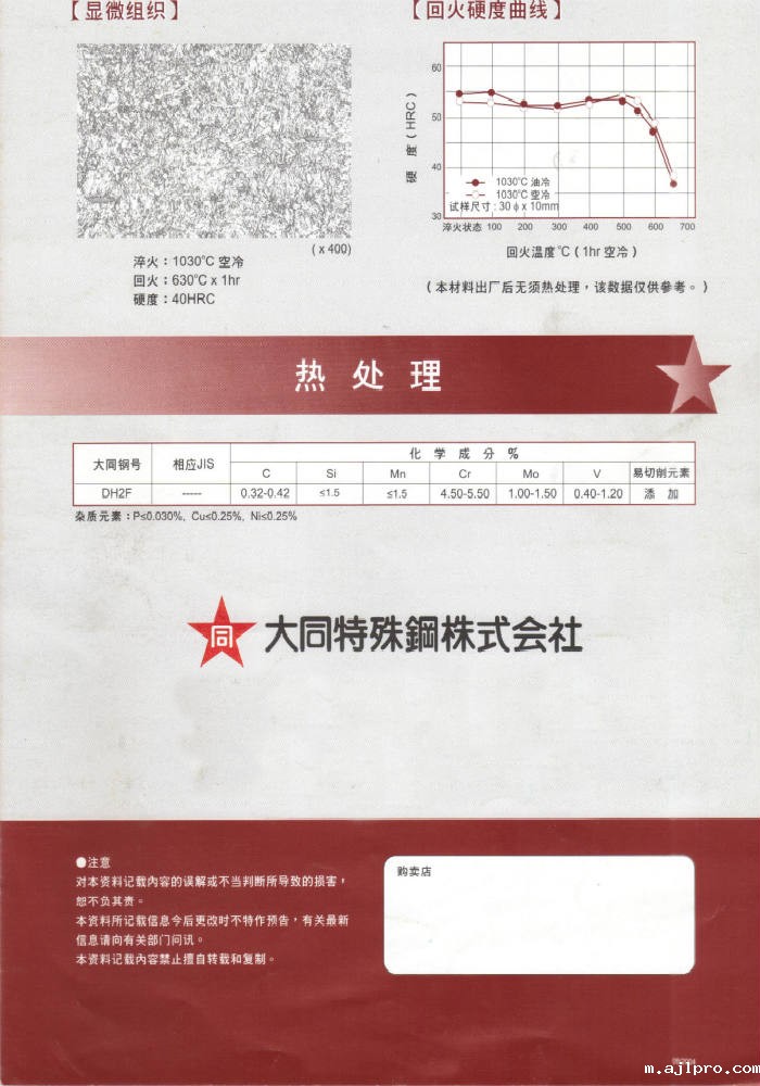 日本大同DH2F(40HRC预硬级)热作模具钢:预硬易切削热作模具钢(40HRC)